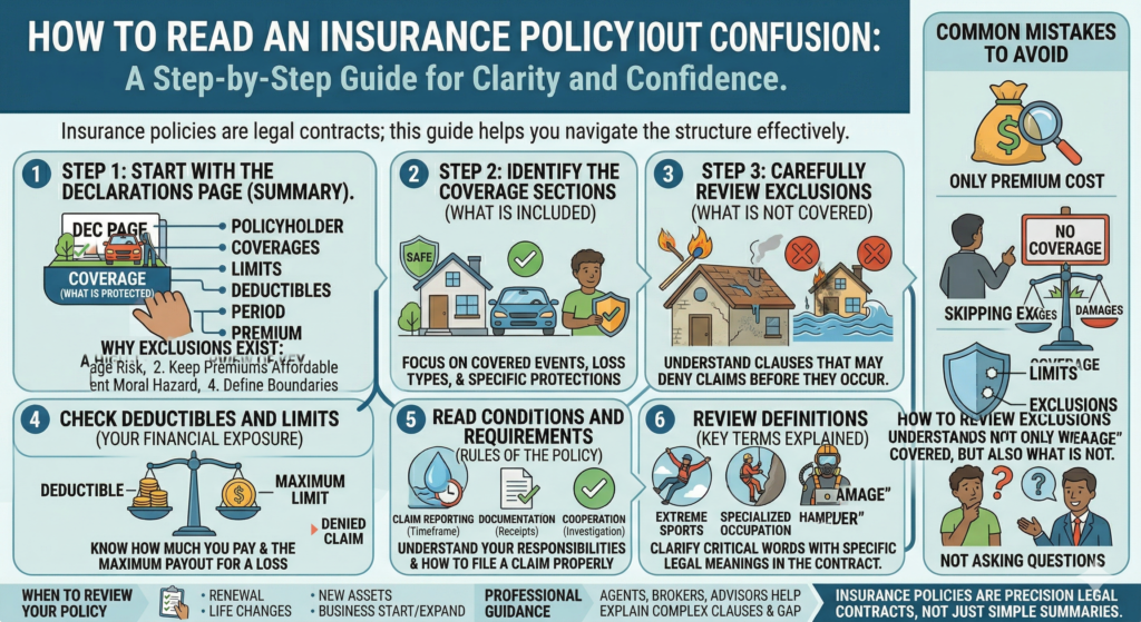 This guide breaks down the process step by step, so you can read an insurance policy with clarity and confidence.