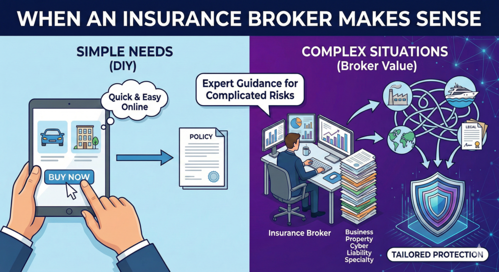 An insurance broker often makes sense when coverage needs extend beyond basic policies.